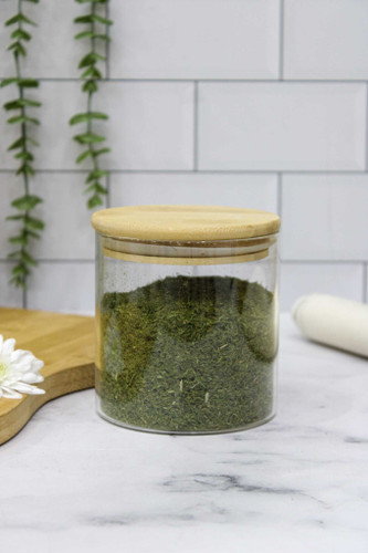 بانکه گرد شیشهای پیرکس مقاوم با درب بامبو واشردار.