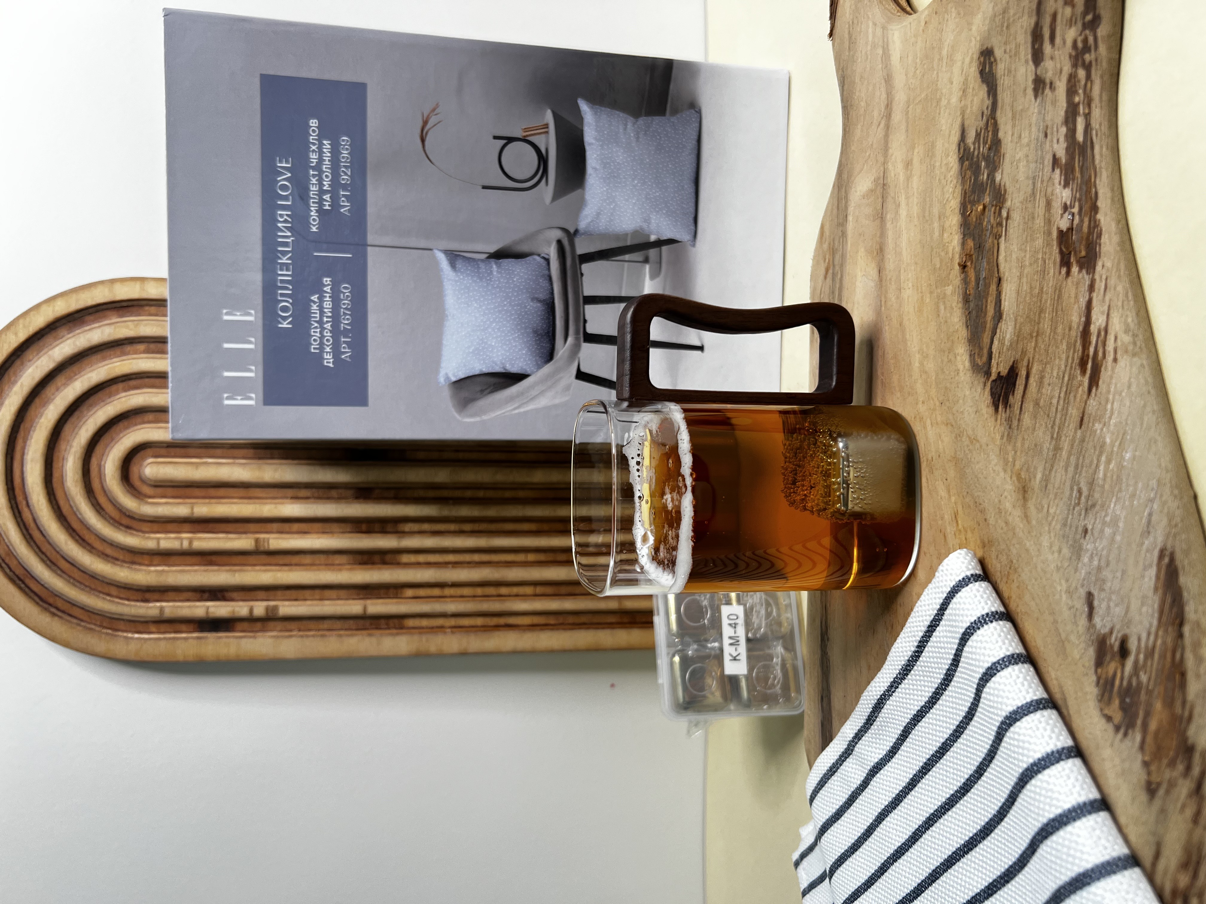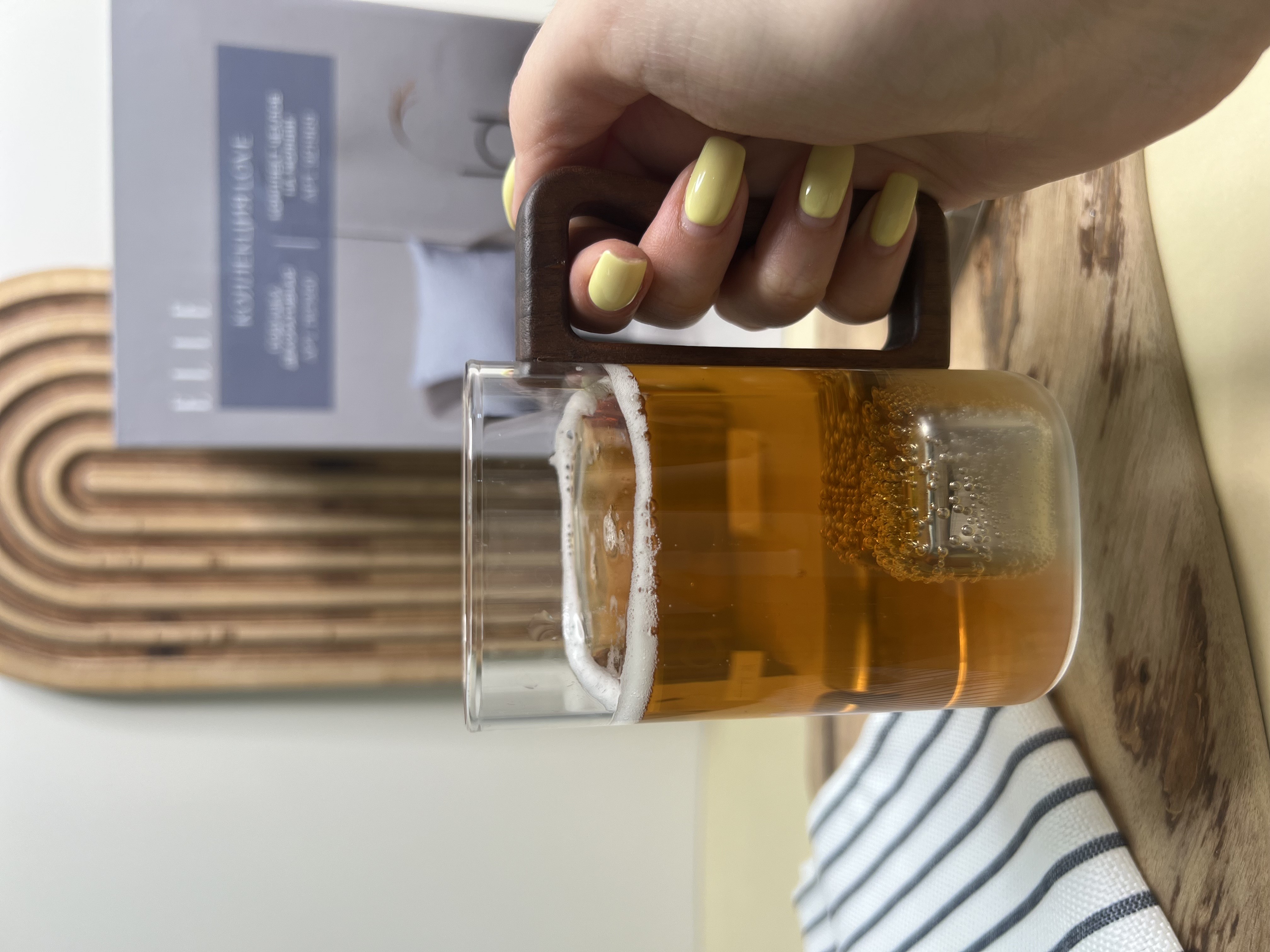 لیوان پیرکس مربع دسته چوبی کلاسیک