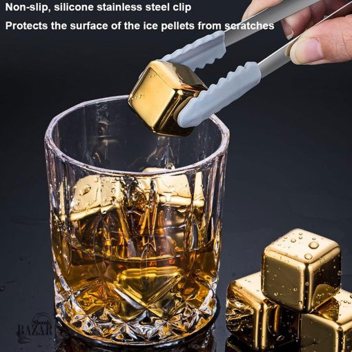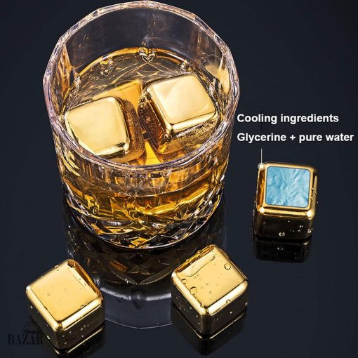 یخ فلزی مکعبی از جنس استیل ضد زنگ است که دوام بالا و اثر خنککنندگی خوبی دارد. ظاهر آن براق و صاف است و استفاده از آن بسیار آسان است. میتوان این یخها را برای نوشیدنیهای مختلف استفاده کرد.