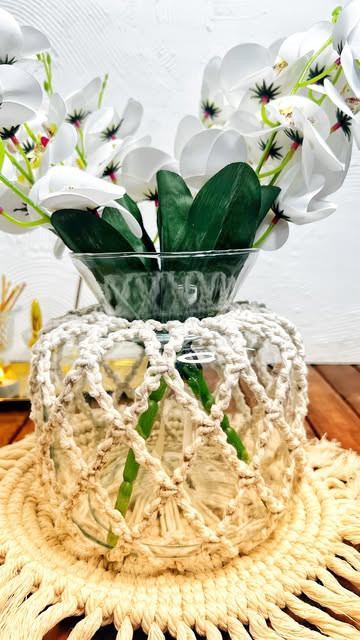 گلدان مکرومه گلدان دست بافت مکرومه با کیفیت و ظریف زیر گلدان هم موجودگل ارکیده هم موجود یه چیدمان که هیچ وقت ازش سیر نمیشی