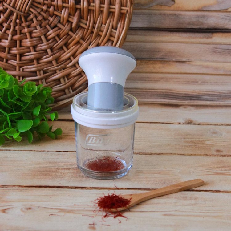 زعفران ساب بیتا وزن:300گرم جنس:پلاستیکو شیشهای شامل هاون و توری متحرک و رینگ محافظ و توری ثابت و لیوان شیشه ای و درب پلاستیکی میباشد