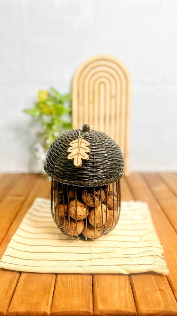 سبد بلوط گردو هم به عنوان دکوری هم جای گردو، تخم مرغ و تنقلات فلزی با کیفیت یه اکسسوری عالی برای میز صبحانه در رزین و برگ چوبی ارسال به با ضمانت سالم رسیدن آدرس: جوادیه پاساژ اطلس سرو هوم گالری