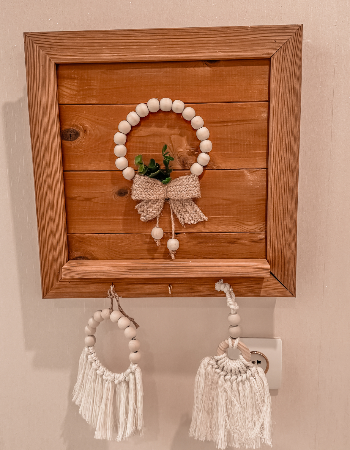 این باکس دیواری چوبی با طراحی خاص و طبیعی، راهحلی ایدهآل برای پوشاندن جعبه فیوز در خانههایی با دکور گرم و مینیمال است. بدنه از چوب مقاوم با رنگ گرم ساخته شده و تزیین روبان کنفی و مهرههای چوبی سفید، جلوهای طبیعی و خاص به آن بخشیده است. درب این باکس بهراحتی باز و بسته میشود و با نصب آسان روی دیوار، بدون نیاز به تخریب یا تغییر ساختار، جعبه فیوز را پنهان و دکوراسیون را زیباتر میکند.