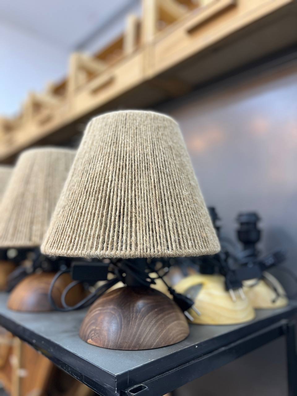 آباژور رومیزی چوبی با شید کنفی | نور گرم و دکور طبیعی