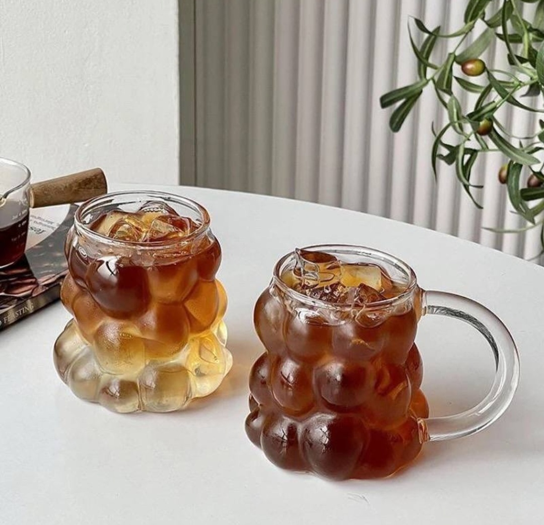 لیوان پیرکس حبابی یا همان لیوان انگوری پینترستی با طراحی حبابی یا انگوری خود، جلوهای زیبا و منحصر به فرد به محیط شما میبخشد. برآمدگیهای حبابی یا حالت bubble روی سطح لیوان، این محصول را به یک انتخاب چشمگیر تبدیل میکند و به دکوراسیون شما زیبایی میبخشد. این طراحی زیبا باعث میشود که ماگ پیرکس حبابی دسته دار در هر محیطی جلب توجه کند.