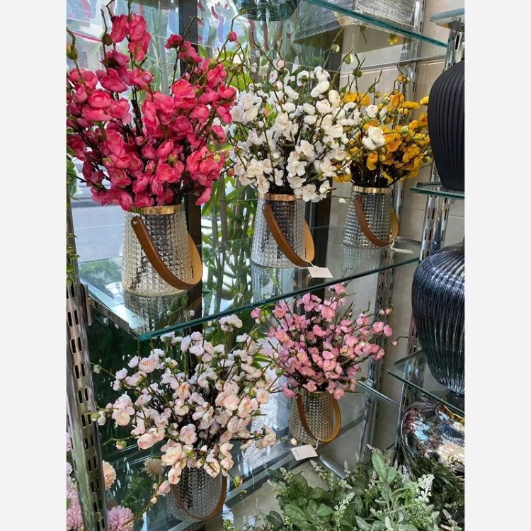 شکوفه به ژاپنی ساقه چرمی جنس درجه یک وقابل شستشو ساقه حالت پذیر مناسب برای گلدون رومیزی ساقه کار بسیار طبیعی