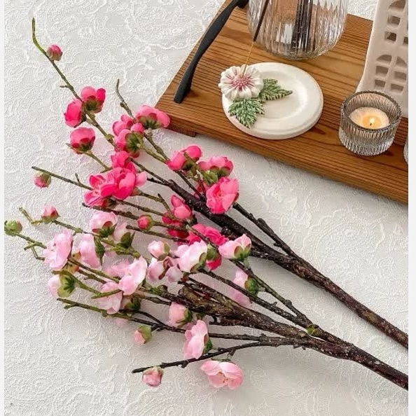 شکوفه به ژاپنی ساقه چرمی جنس درجه یک وقابل شستشو ساقه حالت پذیر مناسب برای گلدون رومیزی ساقه کار بسیار طبیعی
