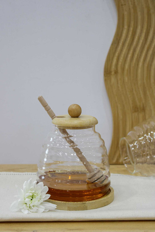 این عسلخوری از پیرکس شفاف و مقاوم ساخته شده که دید کامل از محتویات داخل ظرف را فراهم میکند.