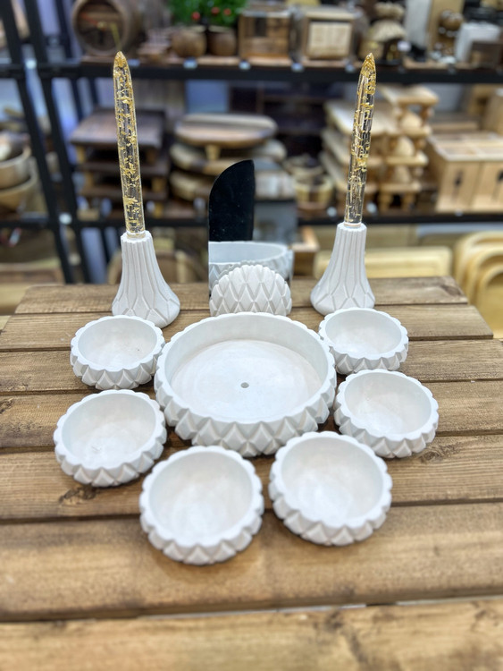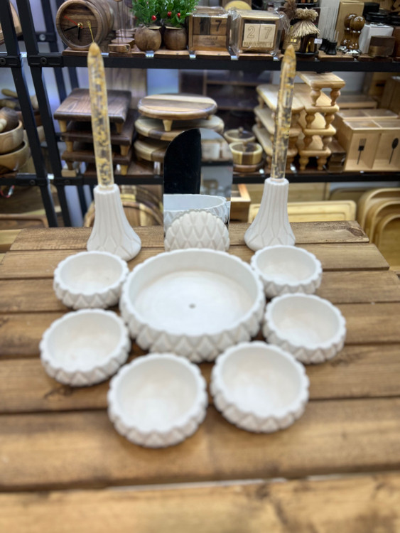 شامل 6 عدد پیاله 1 عدد کاسه 1 آینه و 1 جفت شمعدان