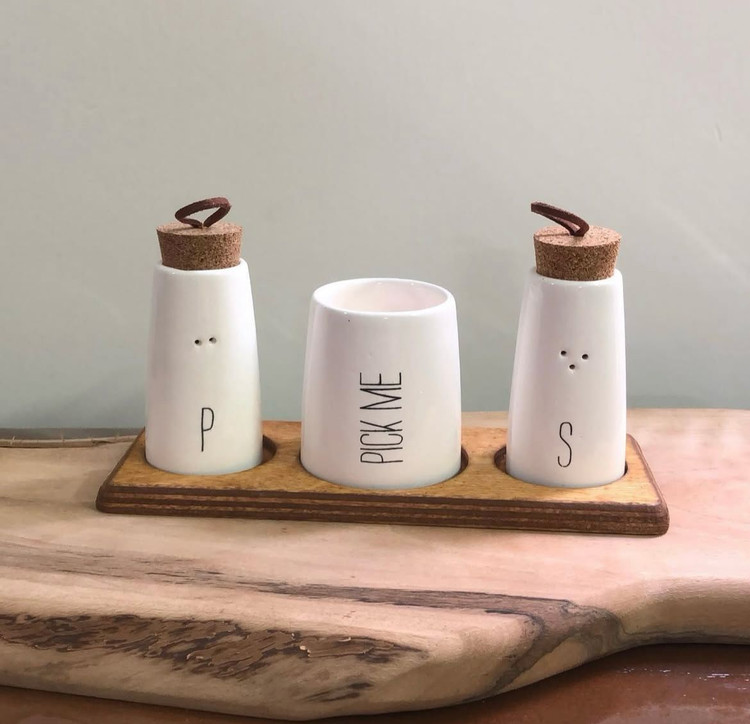 ست نمک پاش زیره چوبی یکی از جذاب ترین وسایل روی میز غذاخوری با 2 عدد نمک و فلفل دان + 1 عدد جای خلال دندان با استند چوبی برای قرار گرفتن شیک و بدون لغزش روی میز است که طراحی سرامیکی و چوب بسیار آن را خاص کرده است. برای پر کردن نمک درب روی آن که شبیه چوب پنبه است را برمیدارید و آن را پر می کنید. خاص و شیک برای جهیزیه عروس و استفاده در خانه و آشپزخانه ها و تالار و …